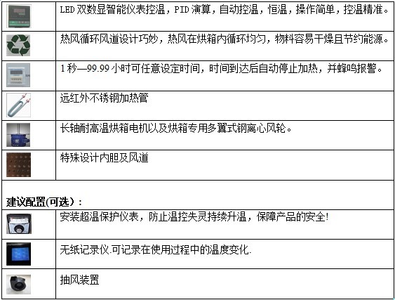 ★如您所烘烤物品帶有揮發(fā)性氣體或者腐蝕物體產(chǎn)生,請您和我們技術(shù)服務(wù)人員詳細說明,必要時要加裝防爆裝置或者采用耐腐蝕性材料制作。嚴禁烘烤易爆物品!